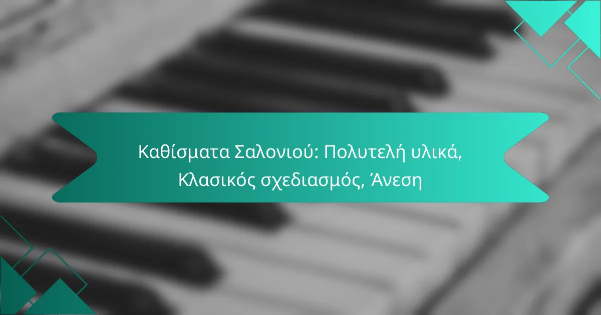 Οι βασικές κατηγορίες καθισμάτων σαλονιού περιλαμβάνουν διάφορα υλικά και στυλ, που επηρεάζουν την εμφάνιση και την άνεση. Κάθε κατηγορία προσφέρει μοναδικά πλεονεκτήματα και χαρακτηριστικά, καθιστώντας την επιλογή τους σημαντική για τη διακόσμηση του χώρου σας.